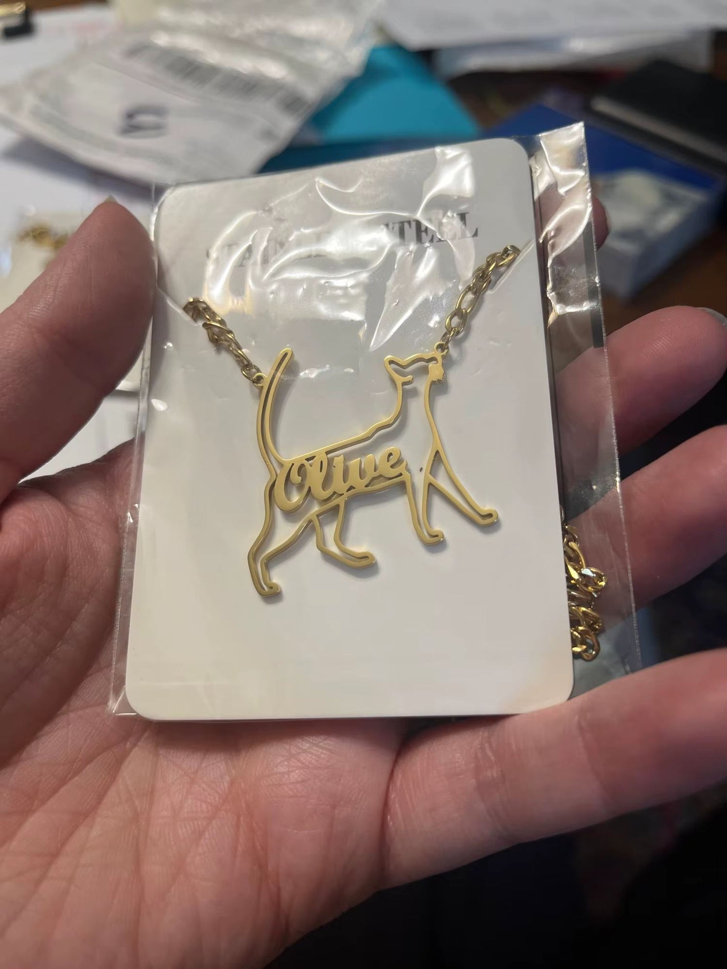Cada collar es una pieza única, diseñada con amor a partir de la silueta real de tu gatito